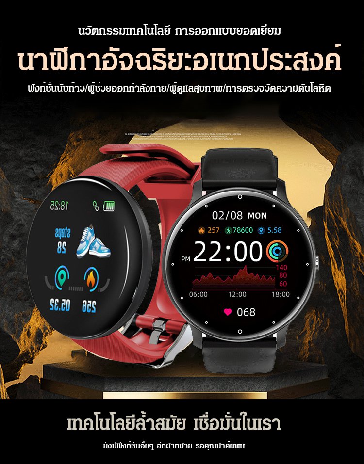 สมาร์ทวอทช์ D18 พร้อมการตรวจวัดอัตราการเต้นของหัวใจและความดันโลหิต